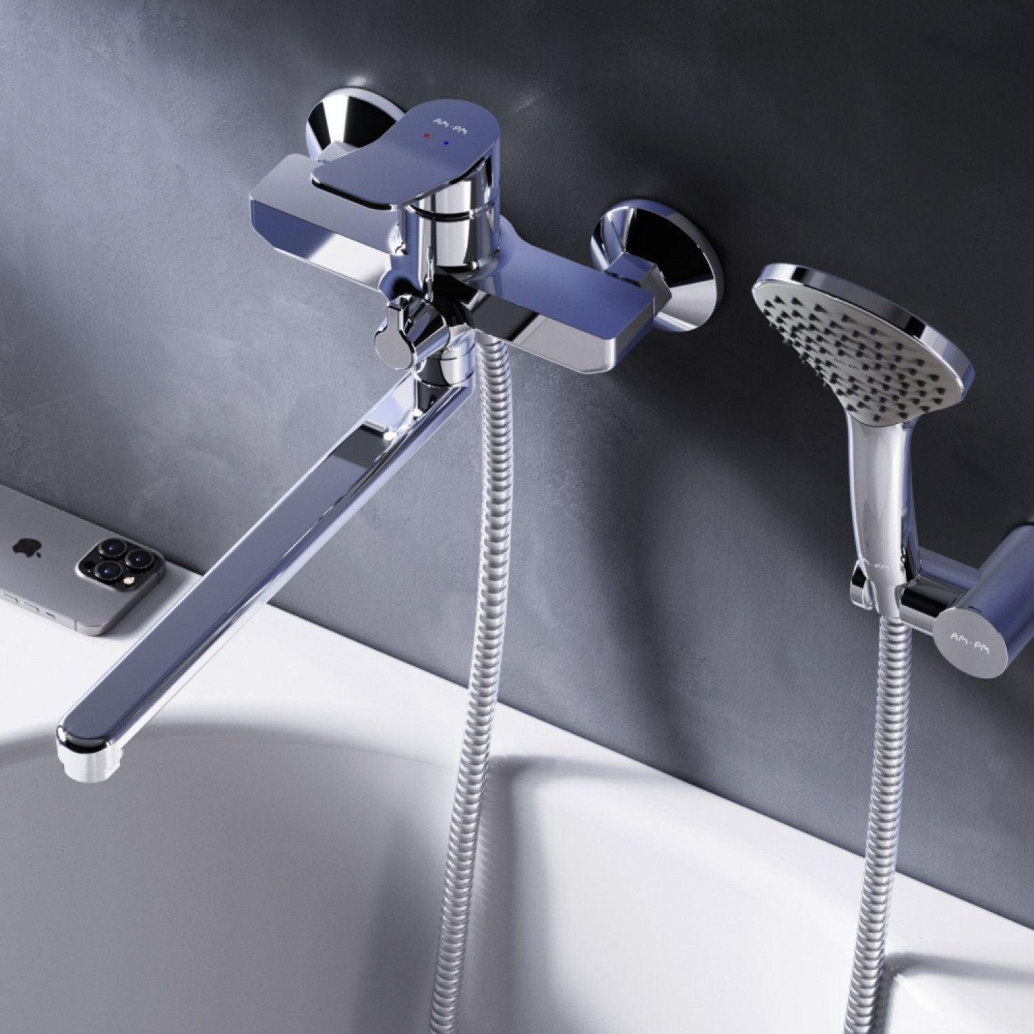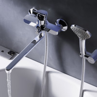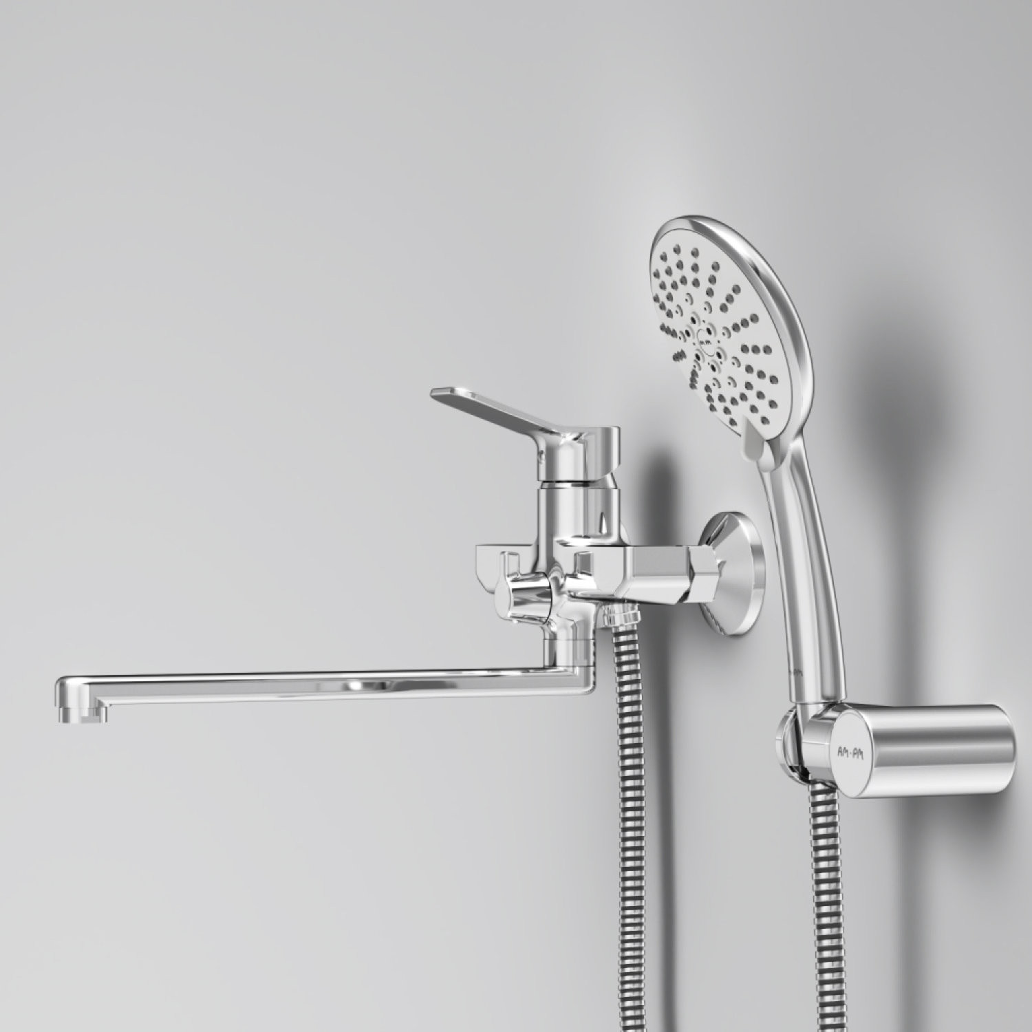 Смеситель для ванны и душа с длинным изливом и душевым набором