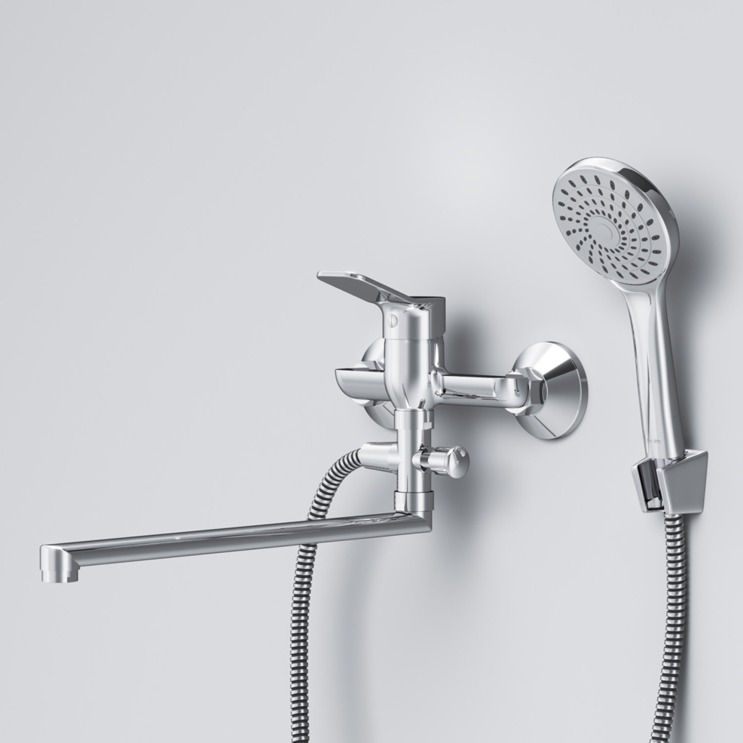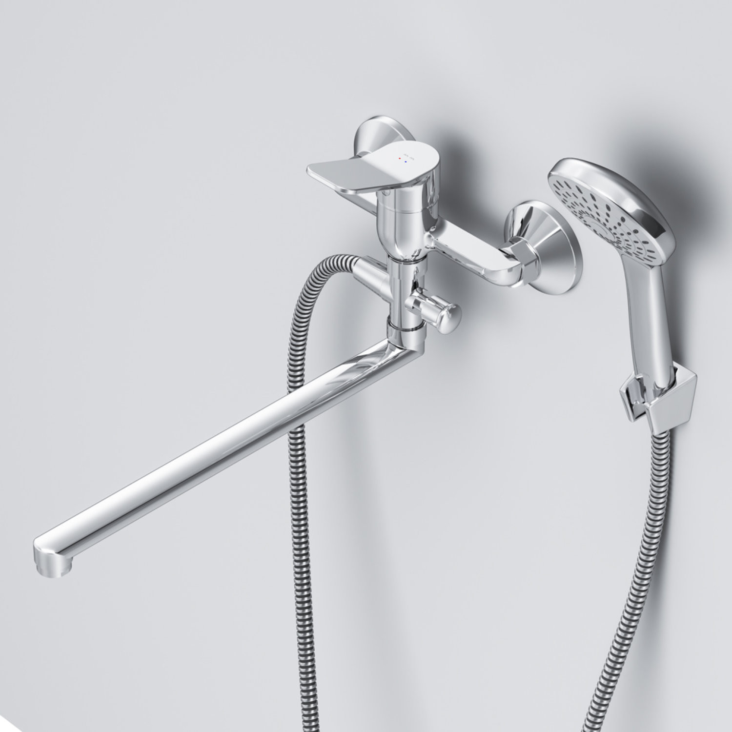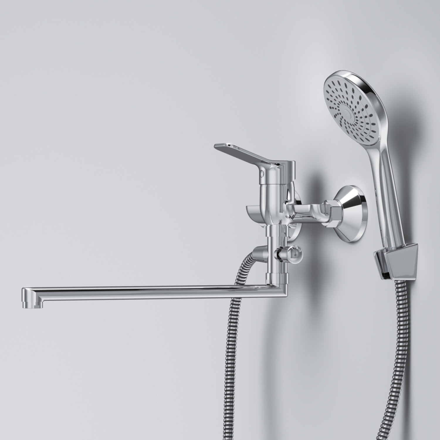 Смеситель для ванны и душа с длинным изливом и душевым набором
