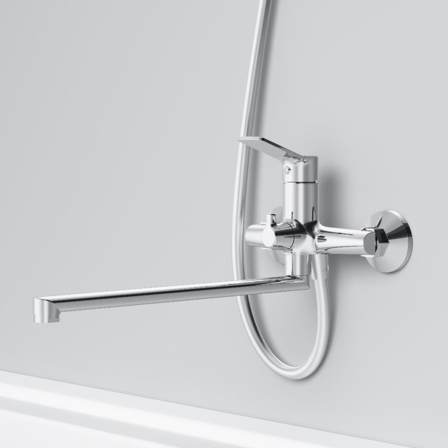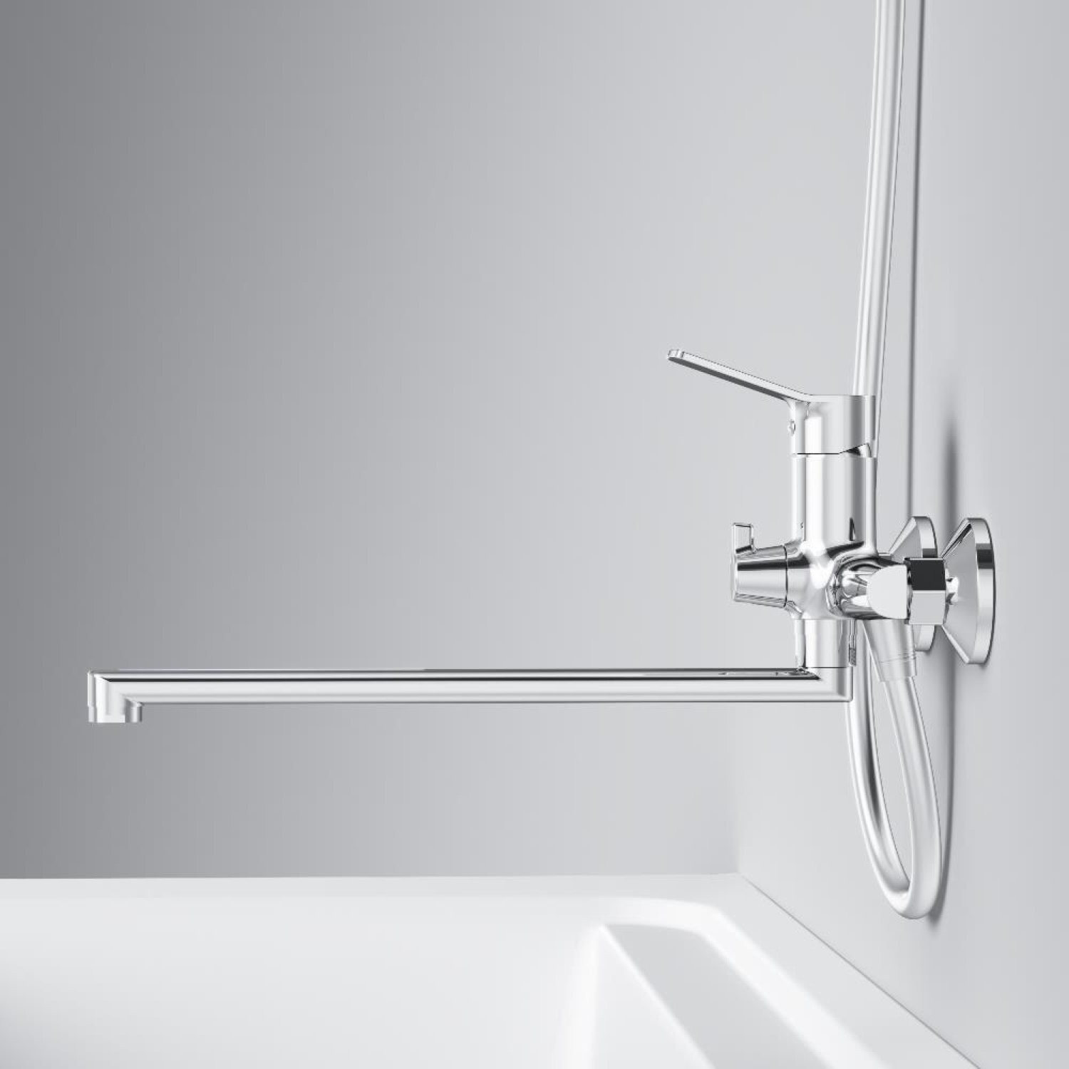 Смеситель для ванны и душа с длинным изливом