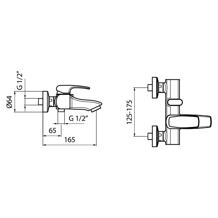 - Однорычажный смеситель для ванны, устанавливаемый на 2 отверстия.