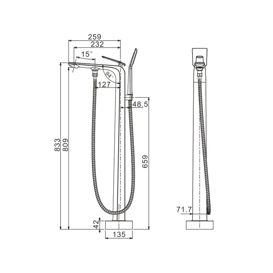 Смеситель для ванны напольный Rose R1322H, черный.