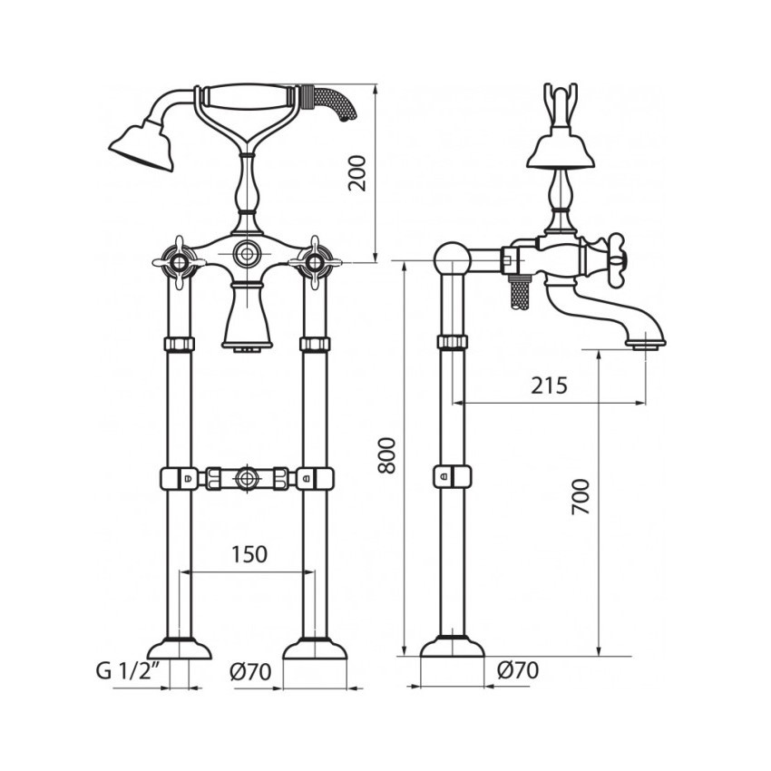 Смеситель для ванны напольный Webert Ottocento. Смеситель изготовлен из латуни.