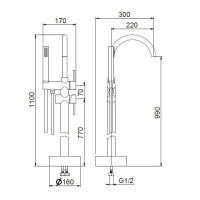 Смеситель для ванны напольный Webert Rimini. Смеситель изготовлен из латуни. Высота излива: 99 см.