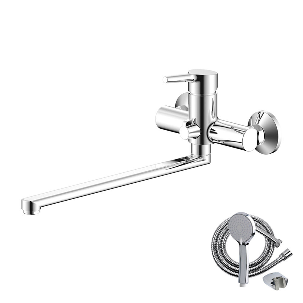 Смеситель для ванны Olive's ALBA 15221AL, хром. Форма: округлая. Излив: традиционный, поворотный. Душевой гарнитур в комплекте: да. Исполнение шланга: металл.