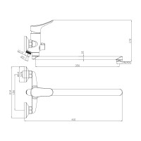 Комплектация: Смеситель, шланг, душевая лейка, держатель душевой лейки, эксцентрики, декоративные отражатели;