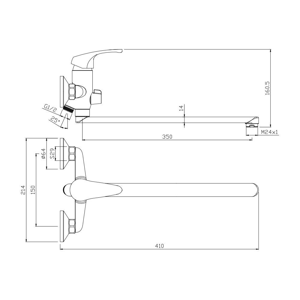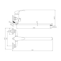 Комплектация: Смеситель, шланг, душевая лейка, держатель душевой лейки, эксцентрики, декоративные отражатели;