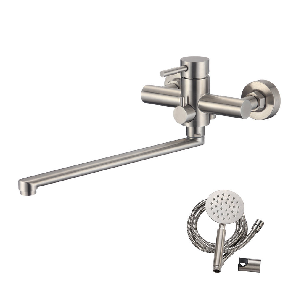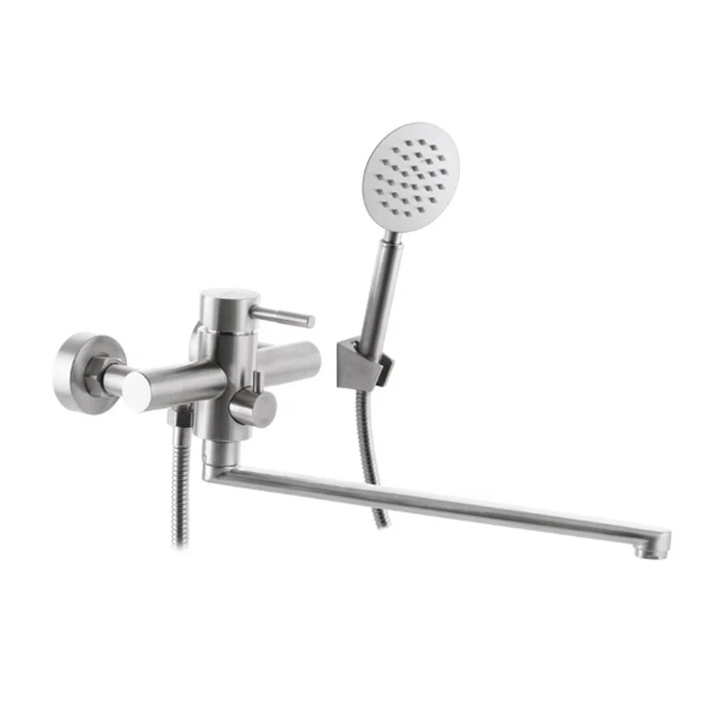 Смеситель для ванны Olive's BALEAR 13221BL, сатин. Форма: округлая. Излив: традиционный, поворотный. Душевой гарнитур в комплекте: да. Исполнение шланга: металл.