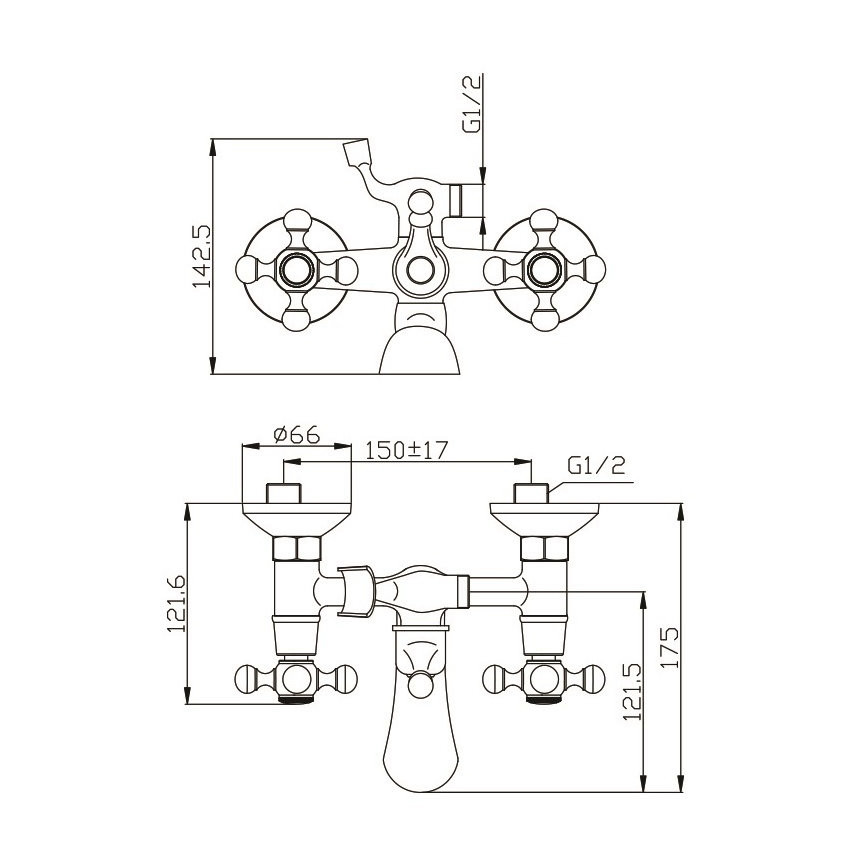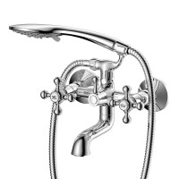 Комплектация: Смеситель, шланг, душевая лейка, держатель душевой лейки, эксцентрики, декоративные отражатели;