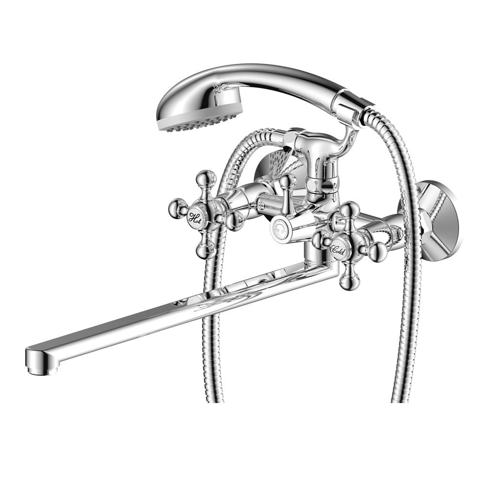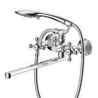 Смеситель для ванны Olive's GIRONA 01221GR, хром. Форма: округлая. Излив: традиционный, поворотный. Душевой гарнитур в комплекте: да. Исполнение шланга: металл.