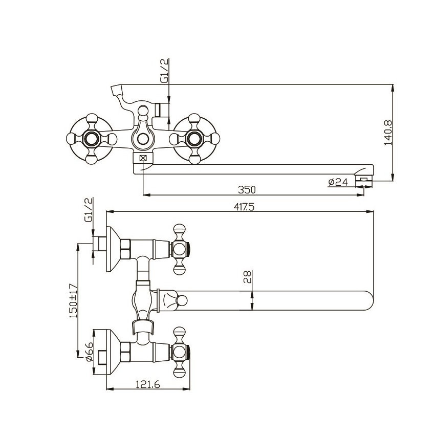 Комплектация: Смеситель, шланг, душевая лейка, держатель душевой лейки, эксцентрики, декоративные отражатели;