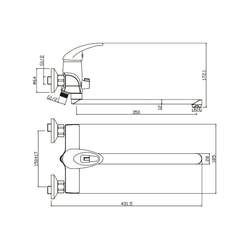 Комплектация: Смеситель, шланг, душевая лейка, держатель душевой лейки, эксцентрики, декоративные отражатели;