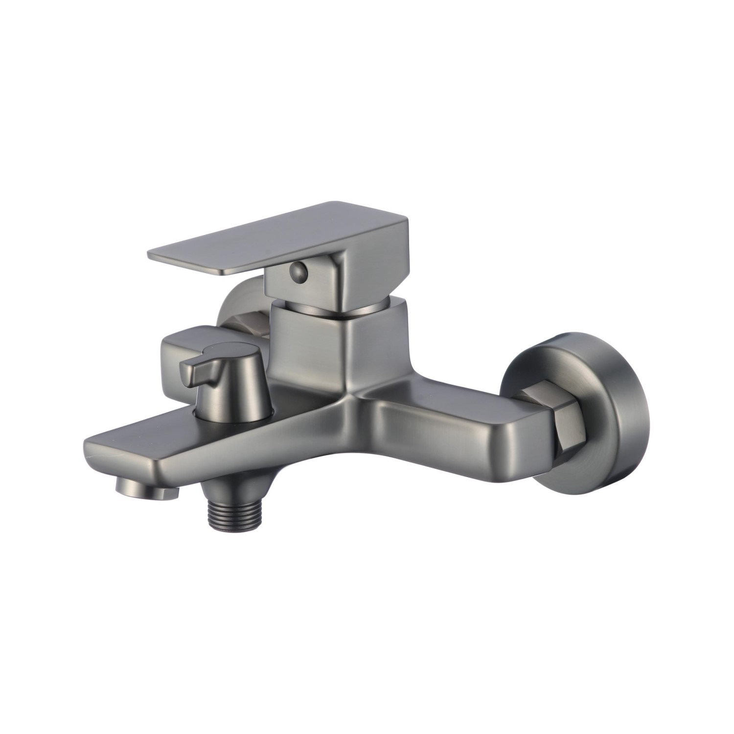 Смеситель для ванны Olive's NAVARRA 25201NRGM, оружейная сталь. Форма: угловатая. Излив: традиционный, фиксированный. Душевой гарнитур в комплекте: да. Исполнение шланга: металл.