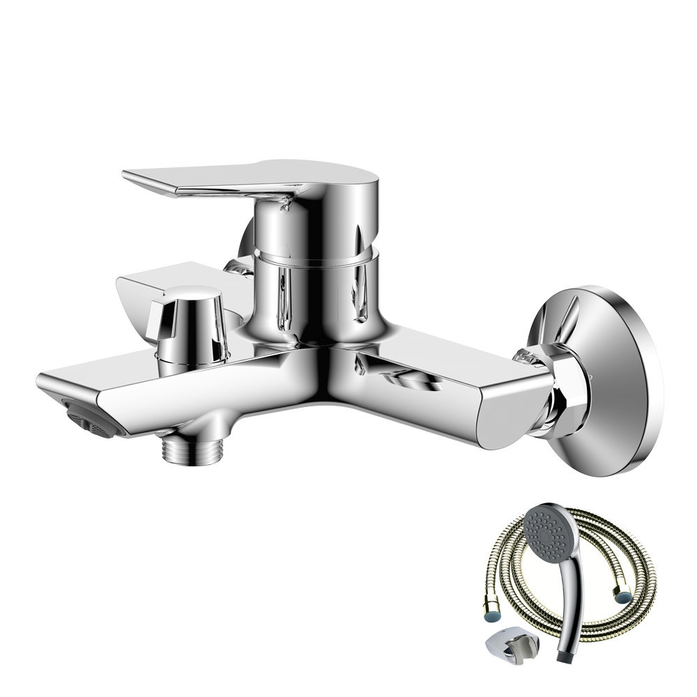 Смеситель для ванны Olive's SEVILLA 20201SV, хром. Форма: угловатая. Излив: традиционный, фиксированный. Душевой гарнитур в комплекте: да. Исполнение шланга: металл.