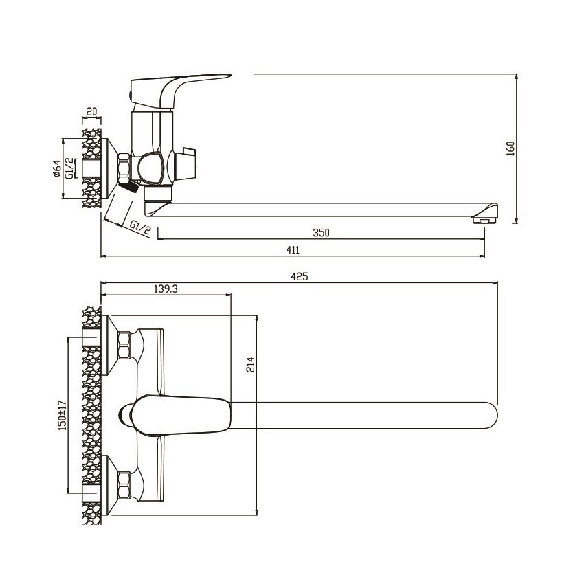Комплектация: Смеситель, шланг, душевая лейка, держатель душевой лейки, эксцентрики, декоративные отражатели;