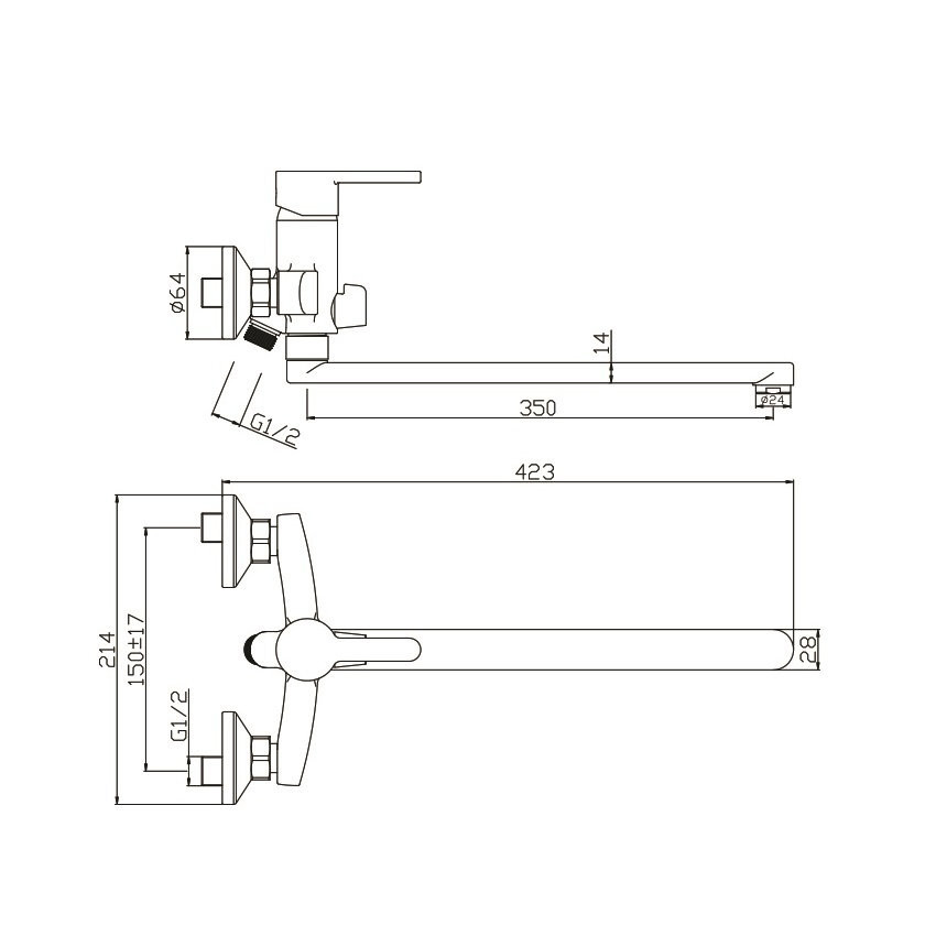 Комплектация: Смеситель, шланг, душевая лейка, держатель душевой лейки, эксцентрики, декоративные отражатели;