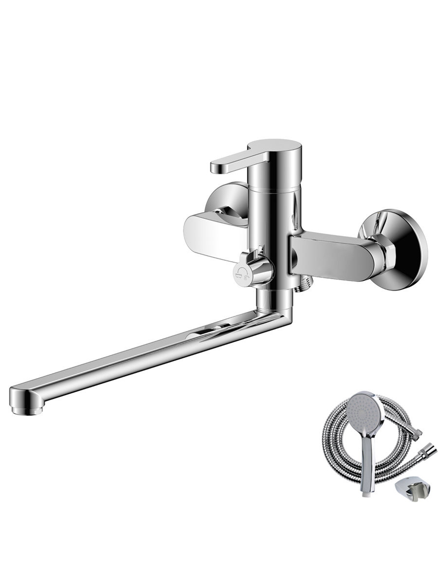 Смеситель для ванны Olive's TORRES 17221TR, хром. Форма: округлая. Излив: традиционный, поворотный. Душевой гарнитур в комплекте: да. Исполнение шланга: металл.
