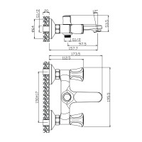 Комплектация: Смеситель, шланг, душевая лейка, держатель душевой лейки, эксцентрики, декоративные отражатели;