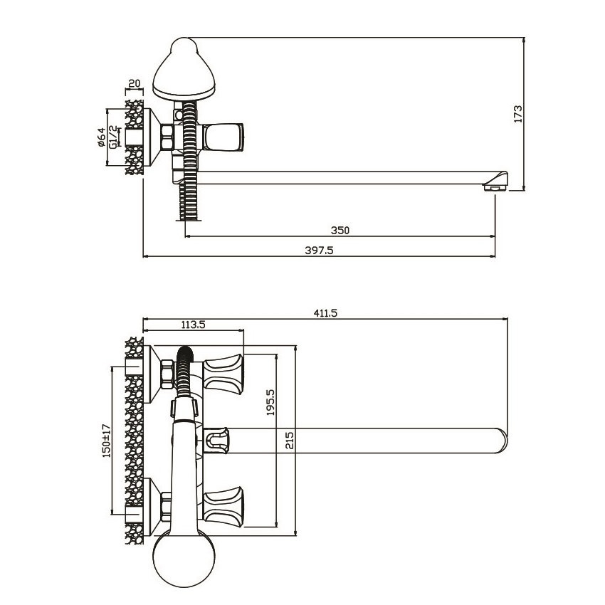 Комплектация: Смеситель, шланг, душевая лейка, держатель душевой лейки, эксцентрики, декоративные отражатели;
