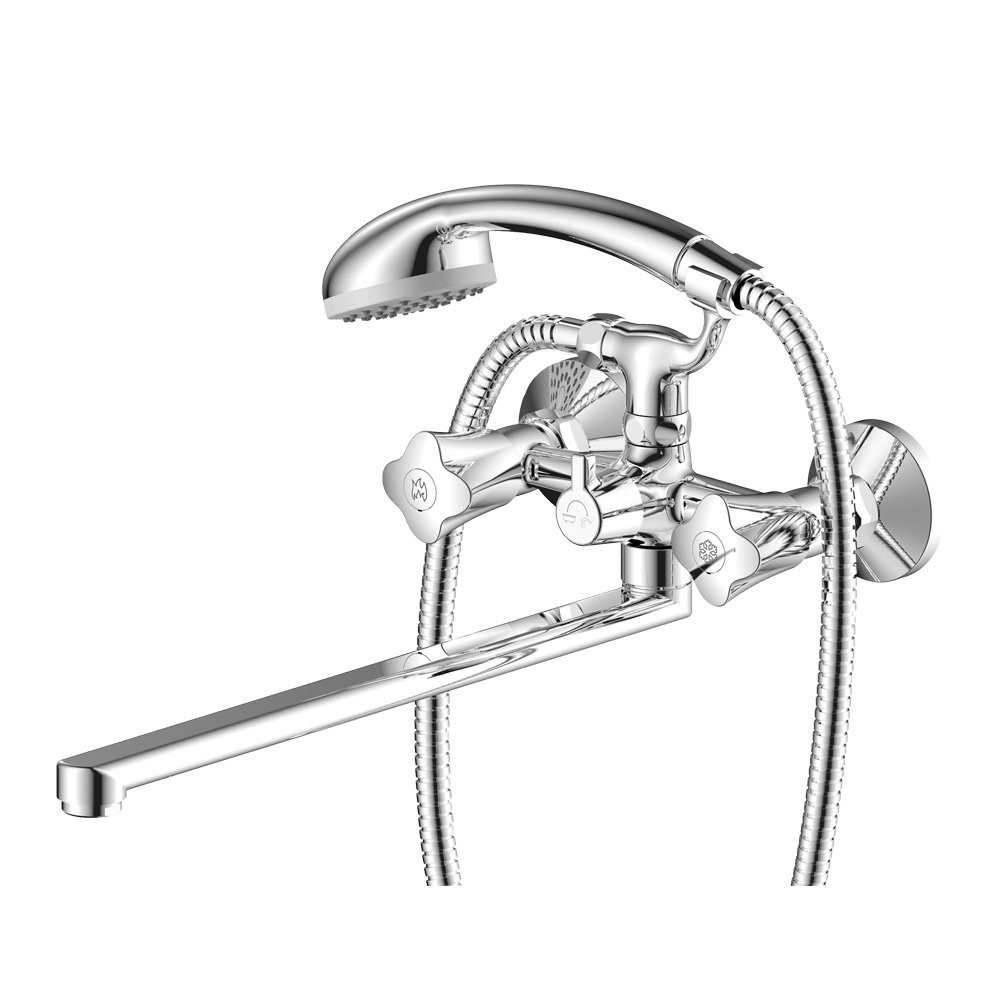 Комплектация: Смеситель, шланг, душевая лейка, держатель душевой лейки, эксцентрики, декоративные отражатели;