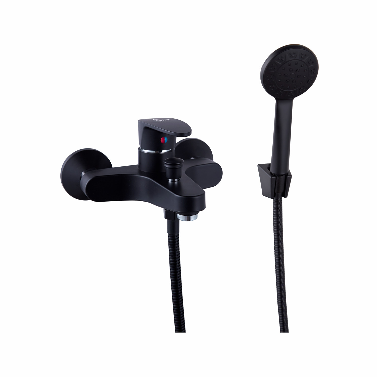 Смеситель для ванны PLstart PL3205-7, чёрный. Материал: пластик/сталь. Вращение излива: фиксированный. Управление: рычажное. Душевой гарнитур в комплекте: да.