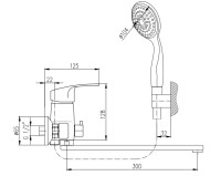 Комплектация: смеситель, душевая лейка, шланг, инструкция;