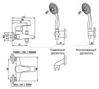 Комплектация: смеситель, душевая лейка, шланг, инструкция;