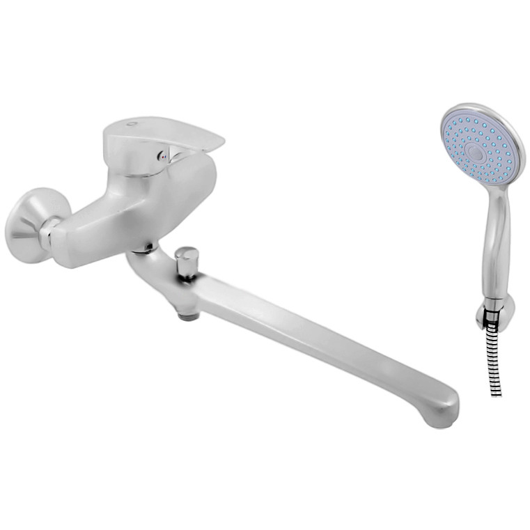 Комплектация: смеситель, душевая лейка, шланг, инструкция;