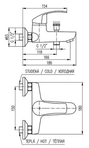 Rav Slezak Mississippi MS054.5 смеситель для ванны с автоматическим переключением. Установка на стену.