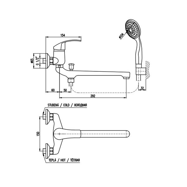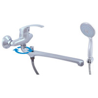 Rav Slezak Mississippi MS057.5/1 смеситель для ванны с переключателем. Поворотный излив,душ в комплекте. Шланг - 150 см. Стабильный держатель лейки. Установка на стену.