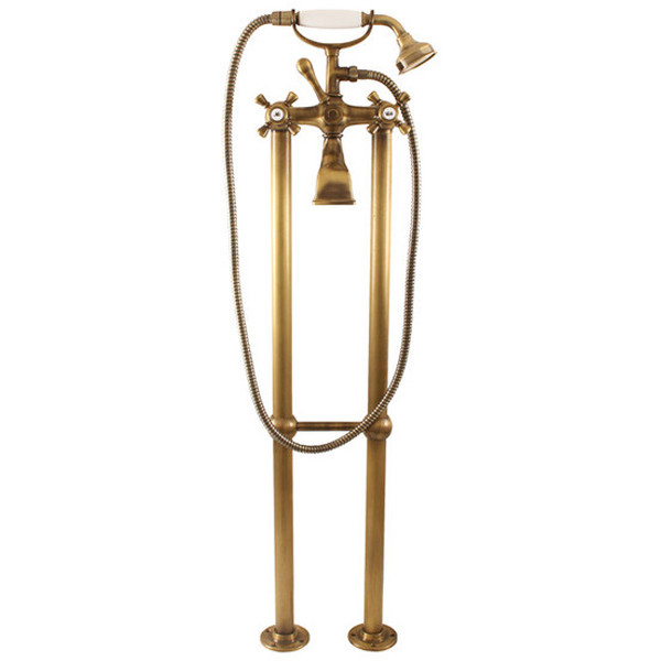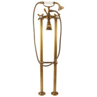 Напольный смеситель для ванны Rav Slezak Morava retro MK450.5/2SM монолитный, с душевым гарнитуром. Латунные рукоятки. Качественные керамические кран буксы, гарантируют долговечность и мягкий поток воды. Шланг металлический с двойной оплеткой, длиной 1500 мм. Латунная душевая лейка с керамической ручкой. В комплекте смеситель с напольными колоннами, шланг, душевая лейка, держатель для лейки и комплект крепления.