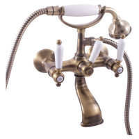 Смеситель для ванны Rav Slezak Morava retro MK559.5/2 монолитный, с душевым гарнитуром. Латунные рукоятки. Качественные керамические кран буксы, гарантируют долговечность и мягкий поток воды, производство Германия. Шланг металлический с двойной оплеткой, длиной 1500 мм. Латунная душевая лейка с керамической ручкой. В комплекте смеситель, шланг, душевая лейка, держатель для лейки и комплект крепления.