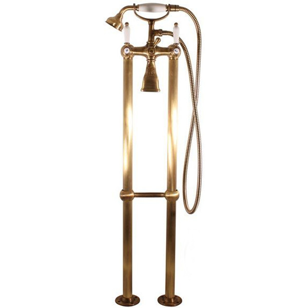Напольный смеситель для ванны Rav Slezak Morava retro MK850.5/2 монолитный, с душевым гарнитуром. Латунные рукоятки. Качественные керамические кран буксы, гарантируют долговечность и мягкий поток воды. Шланг металлический с двойной оплеткой, длиной 1500 мм. Латунная душевая лейка с керамической ручкой. В комплекте смеситель с напольными колоннами, шланг, душевая лейка, держатель для лейки и комплект крепления.