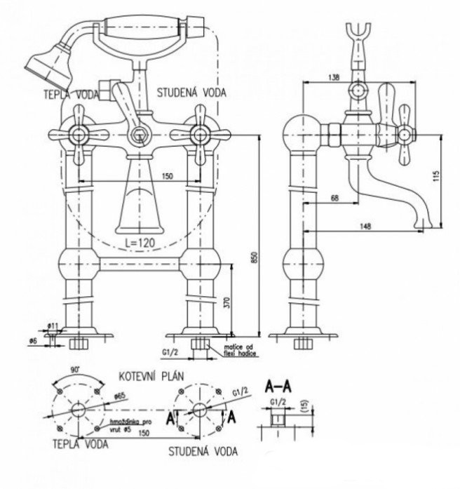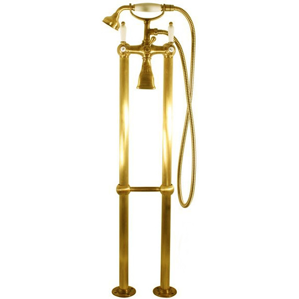 Напольный смеситель для ванны Rav Slezak Morava retro MK850.5/2 монолитный, с душевым гарнитуром. Латунные рукоятки. Качественные керамические кран буксы, гарантируют долговечность и мягкий поток воды. Шланг металлический с двойной оплеткой, длиной 1500 мм. Латунная душевая лейка с керамической ручкой. В комплекте смеситель с напольными колоннами, шланг, душевая лейка, держатель для лейки и комплект крепления.
