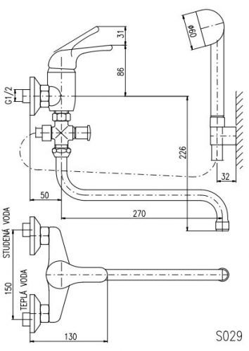 Rav Slezak Sazava SA556.5/1 смеситель для ванны. Круглый кран. Поворотный излив,душ в комплекте. Шланг - 150 см. Стабильный держатель лейки. Установка на стену.