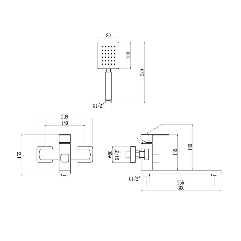 Комплектация: Смеситель, шланг, душевая лейка, держатель душевой лейки, эксцентрики, инструкция;