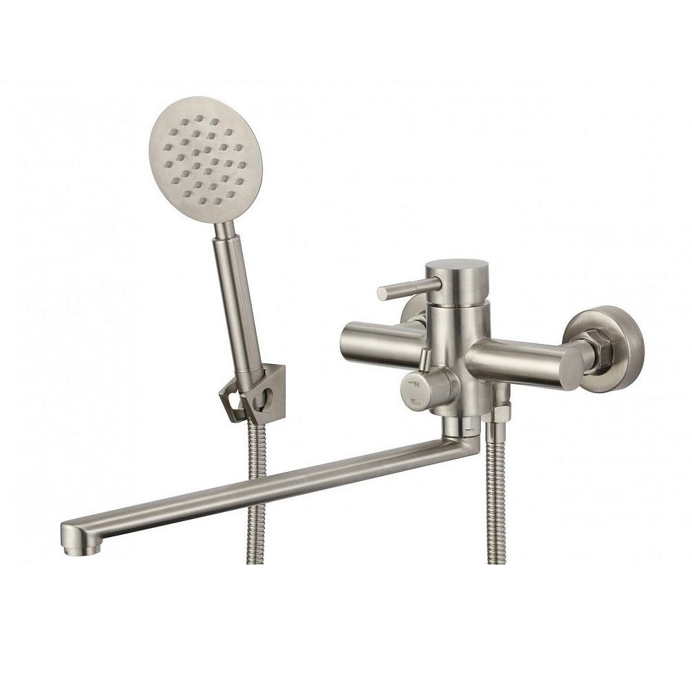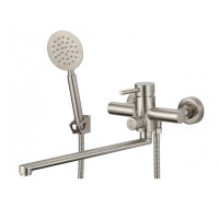 Смеситель для ванны с душем Savol S-SUS4002, сатин. Душевой гарнитур в комплекте. Керамический картридж. Подводка 1/2". Оснащение: аэратор, металлическая розетка, эксцентрики, душевой шланг, душевая лейка, держатель для душевой лейки. Материал лейки: нержавеющая сталь. Диаметр лейки: 9,8 см. Гарантия: 5 лет.