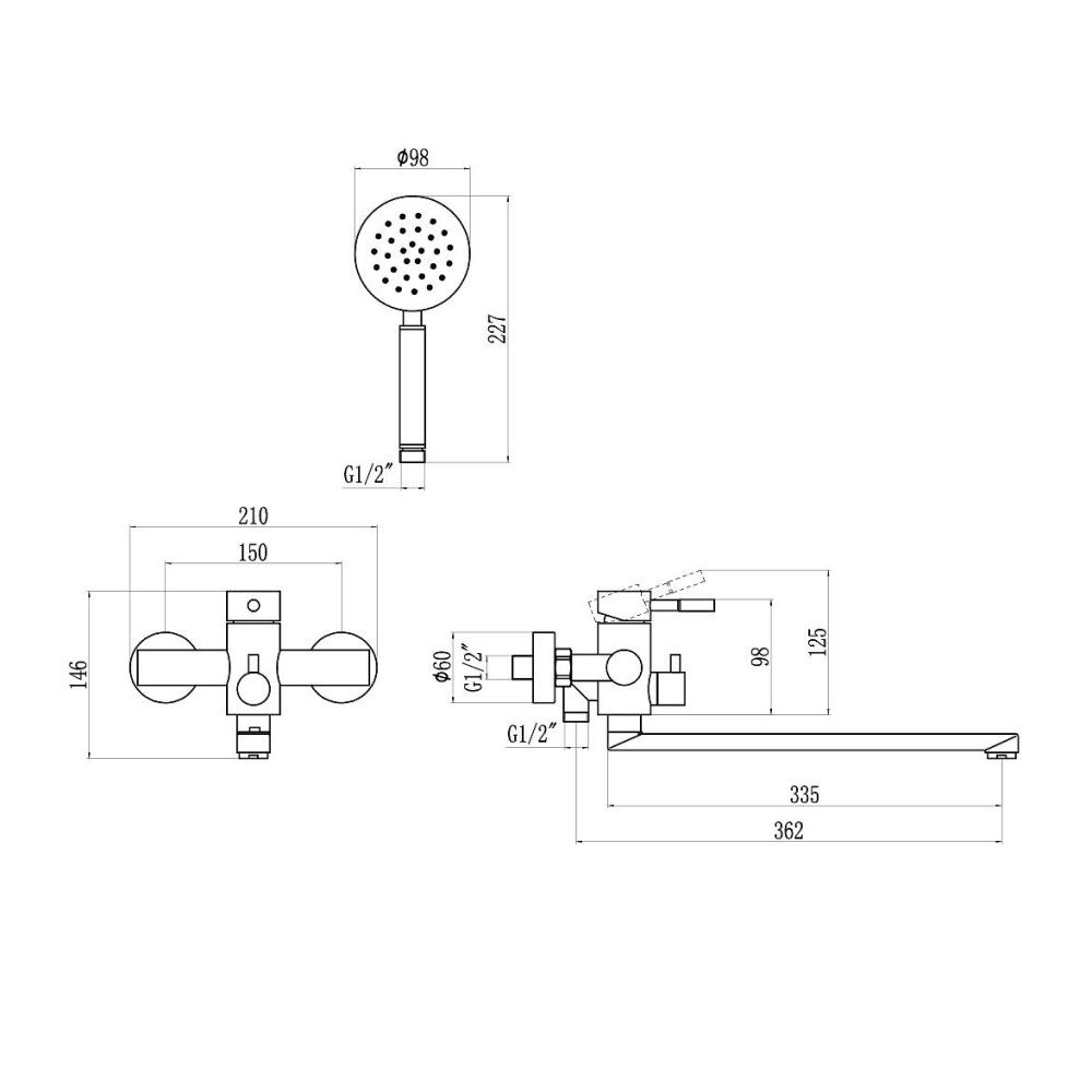 Комплектация: Смеситель, шланг, душевая лейка, держатель душевой лейки, эксцентрики, инструкция;