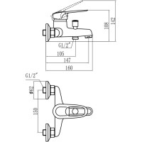 Комплектация: Смеситель, шланг, душевая лейка, держатель душевой лейки, эксцентрики, инструкция;