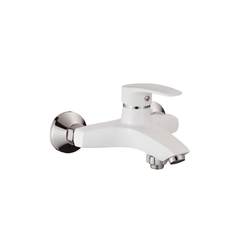 Смеситель для ванны Shevanik S5002F, белый/хром. Душевой гарнитур в комплекте: да. Управление: рычажное. Монтаж: настенный.