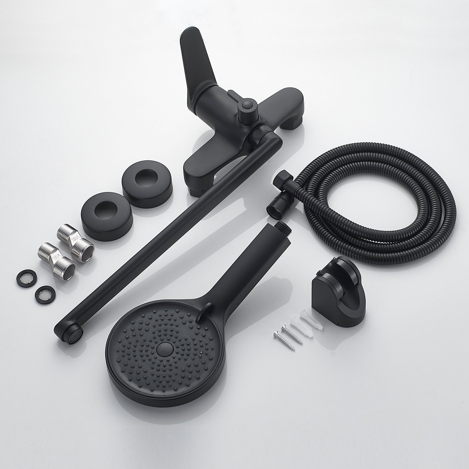 Смесителю также прилагается трёхрежимная душевая лейка со шлангом длиной 150 см, который защищен от перекручивания. В комплекте со смесителем вы также получите эксцентрики, настенный держатель для душевой лейки, а также декоративные отражатели.