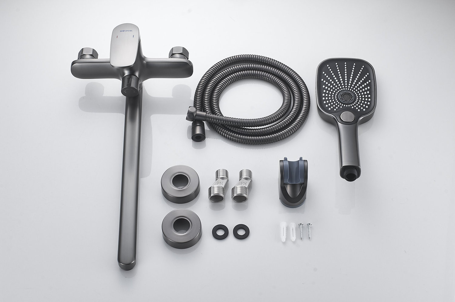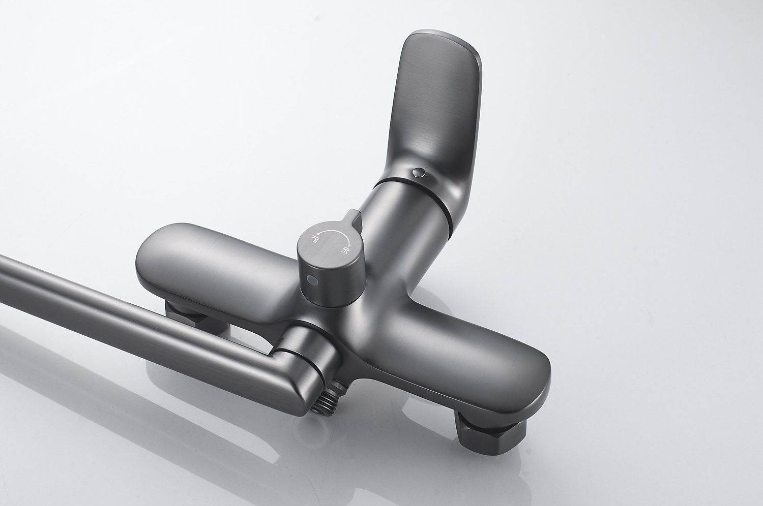 Смеситель для ванны Shevanik S8522T, оружейная сталь. Душевой гарнитур в комплекте: да. Управление: рычажное. Монтаж: настенный.