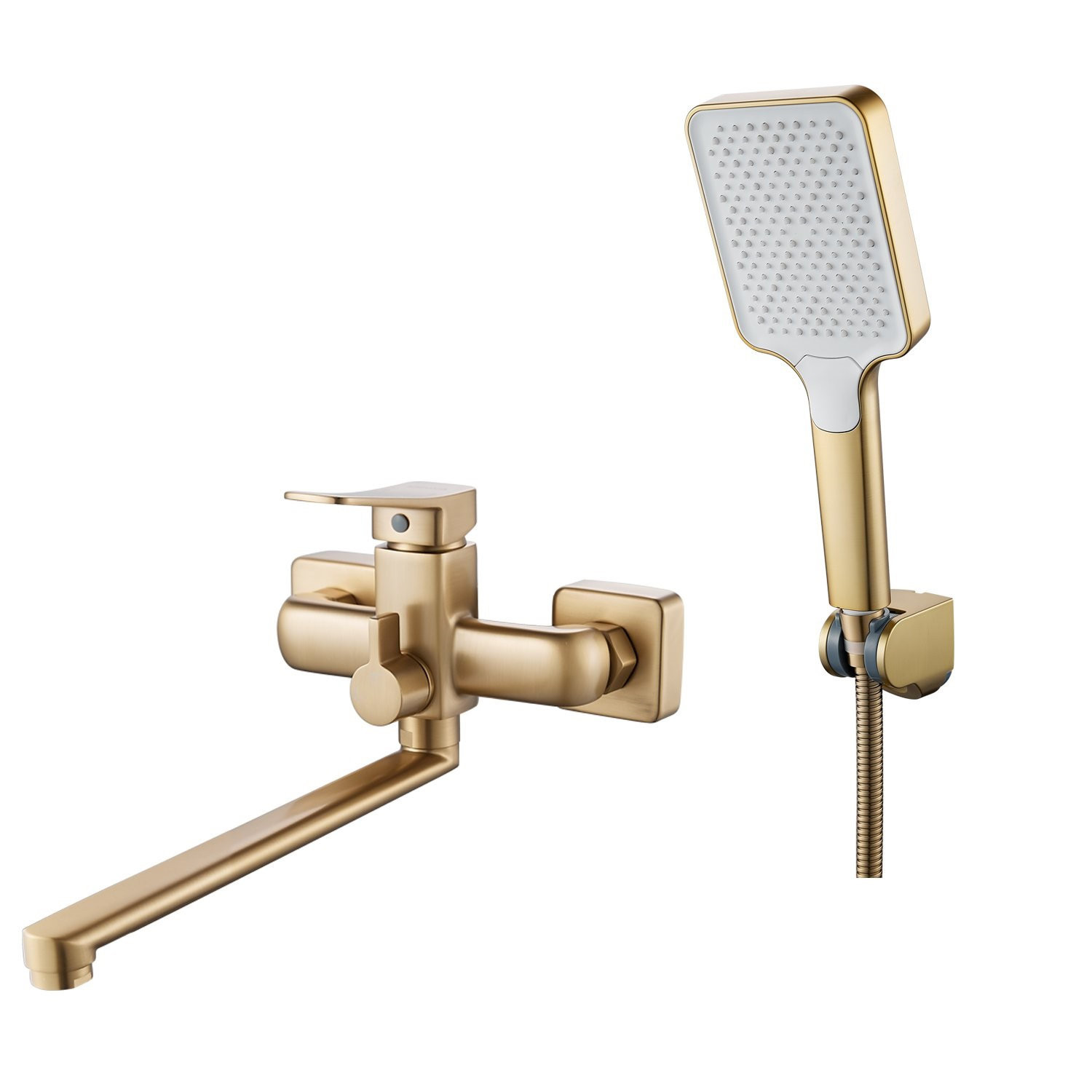 Смеситель для ванны Shevanik S9902G в цвете "золотой сатин" — стильное и функциональное решение для вашей ванной комнаты. Он имеет угловатую форму и изготовлен из высококачественной латуни, что гарантирует его прочность и долговечность. Рычажное управление и керамический картридж обеспечивают плавное и точное регулирование температуры воды.