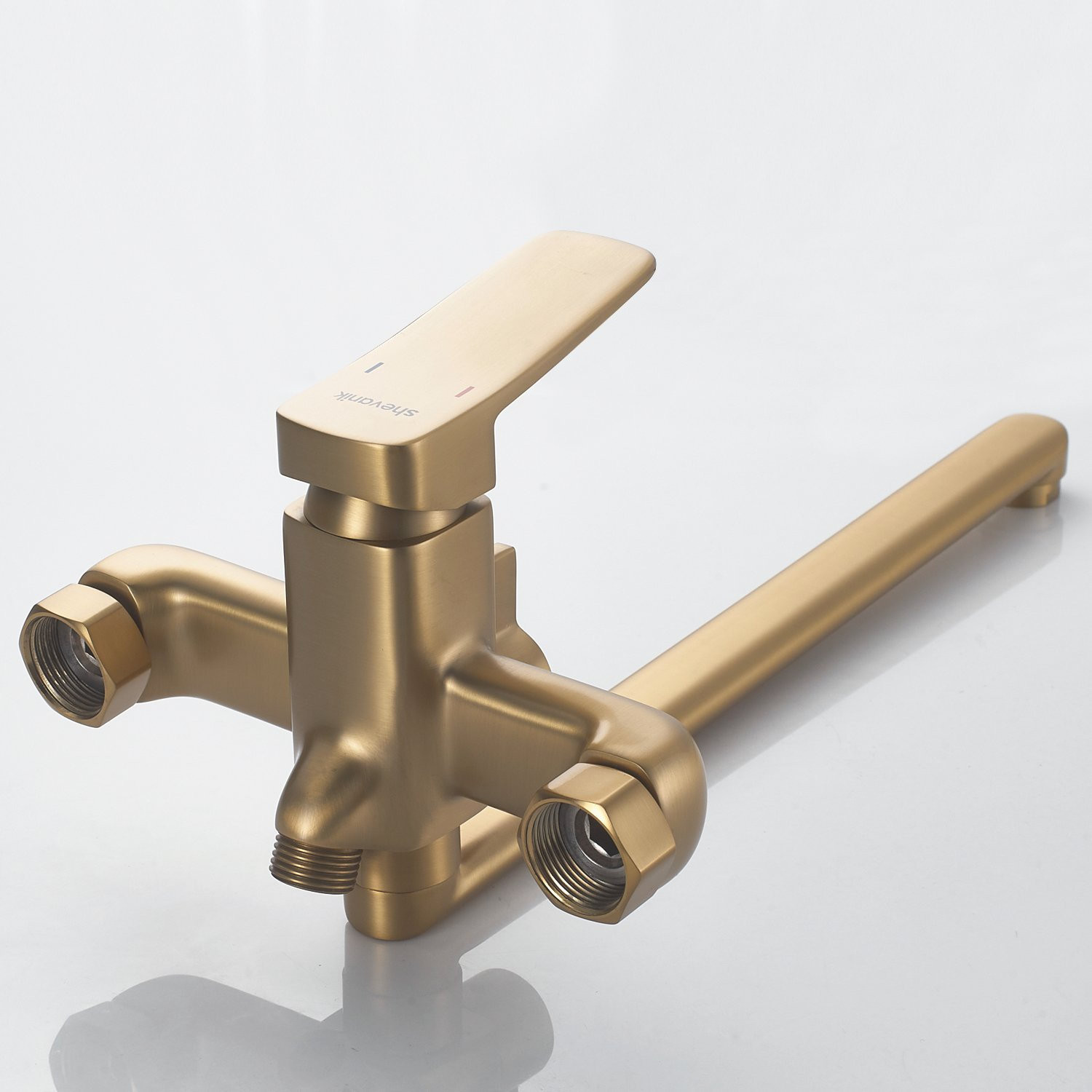 Смеситель для ванны Shevanik S9922G - это стильное и функциональное решение для вашей ванной комнаты. Угловатая форма смесителя прекрасно сочетается с любым интерьером, а длинный поворотный излив с аэратором обеспечивает комфорт при использовании.