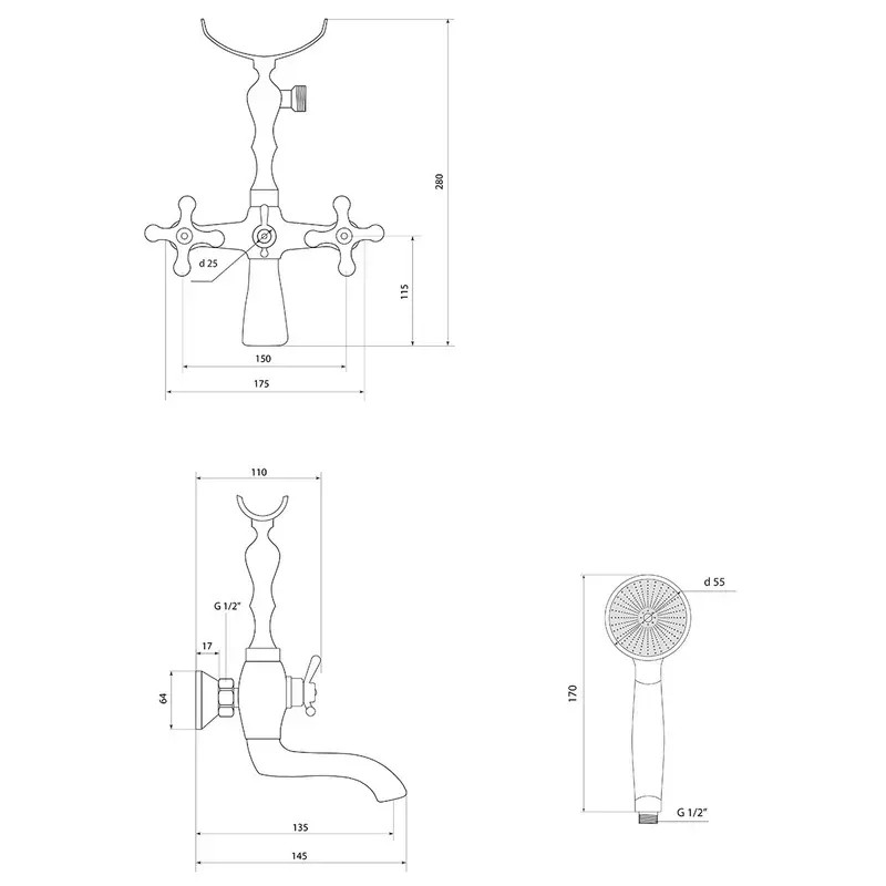 Тип крепления лейки: Крепление на корпусе смесителя, крепление настенное;