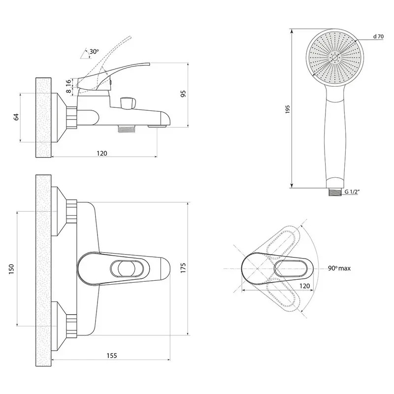Места установки: Ванна;