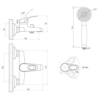 Комплектация: Смеситель, шланг, душевая лейка, держатель душевой лейки, эксцентрики, декоративные отражатели;