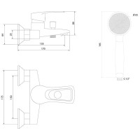 Комплектация: Смеситель, шланг, душевая лейка, держатель душевой лейки, эксцентрики, декоративные отражатели;
