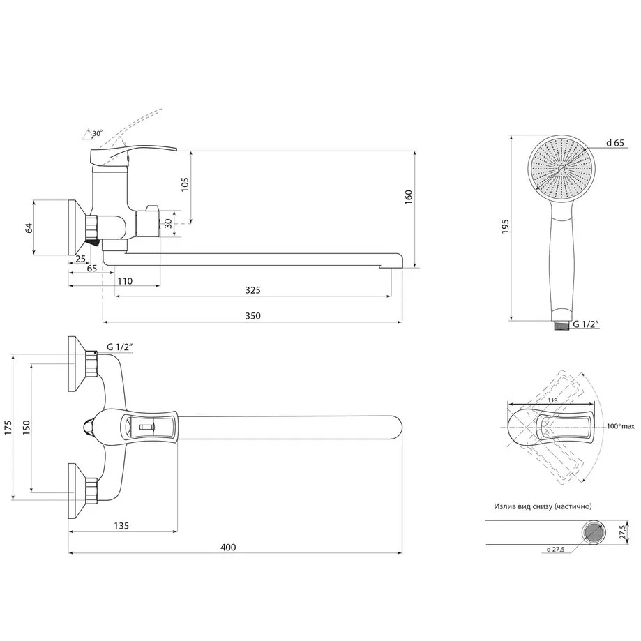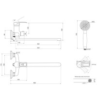 Комплектация: Смеситель, шланг, душевая лейка, держатель душевой лейки, эксцентрики, декоративные отражатели;