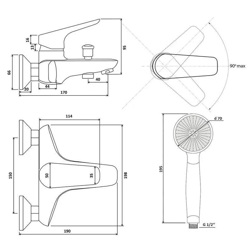 Комплектуется душевым шлангом в металлической оплетке с однорежимной лейкой, паспортом изделия с гарантийным талоном, универсальным гаечным ключом.