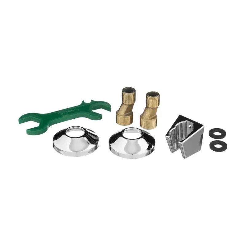 Комплектация: Смеситель, шланг, душевая лейка, держатель душевой лейки, эксцентрики, декоративные отражатели;